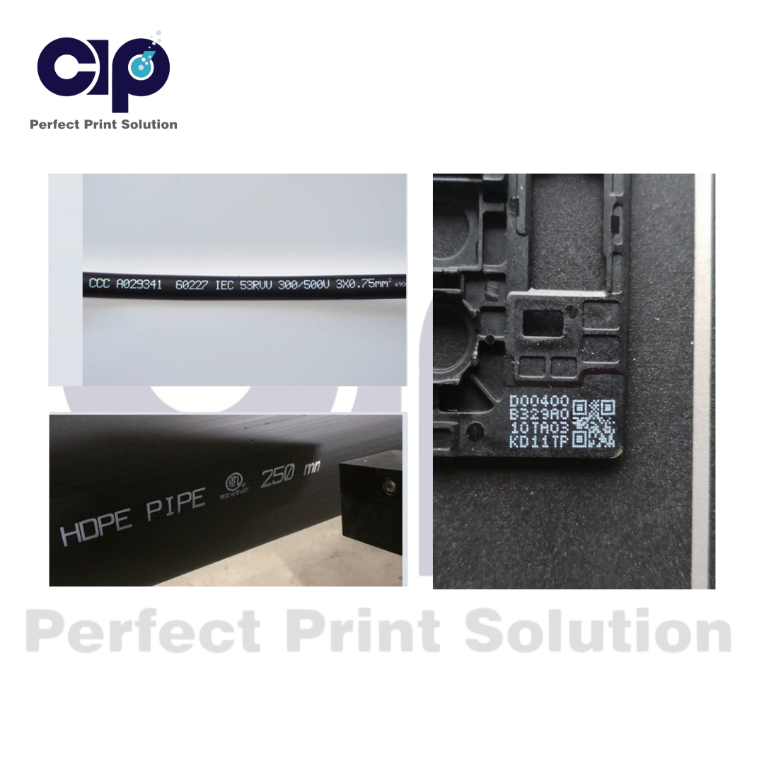 🔌 Dây cáp & Dây điện: In thông tin, mã lô, ngày sản xuất lên dây cáp và dây điện màu đen hoặc tối.