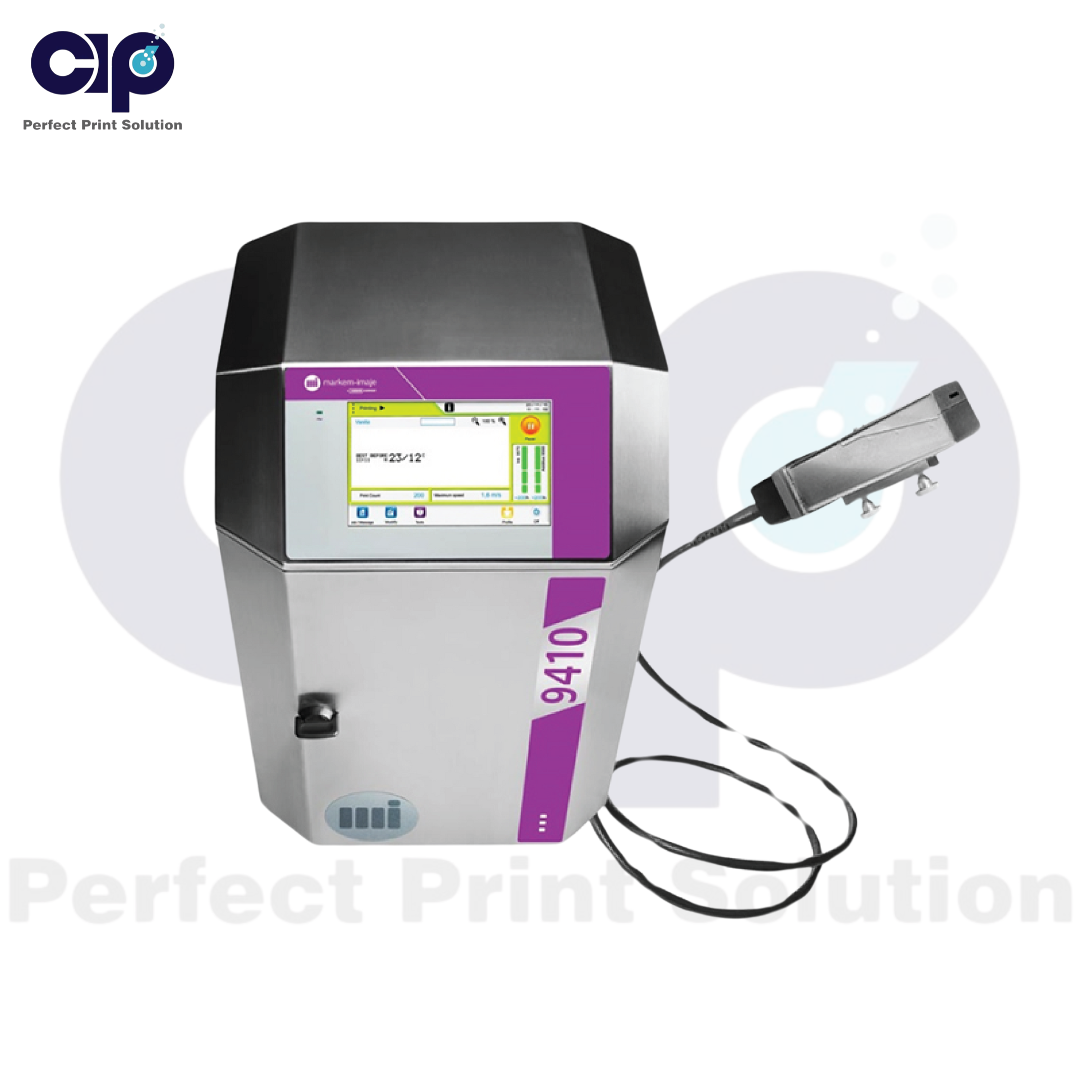 Máy in phun liên tục Markem-Imaje CIJ 9410 là giải pháp in date công nghiệp hiệu suất cao, được thiết kế cho các dây chuyền sản xuất từ nhẹ đến trung bình. Với đầu in mono-jet G (71 dpi), máy hỗ trợ in tối đa 5 dòng, đạt tốc độ in lên đến 4,6 m/s, phù hợp cho in ngày sản xuất, hạn sử dụng, mã lô, mã vạch, mã QR và logo trên nhiều bề mặt như nhựa, kim loại, thủy tinh, giấy, bao bì mềm, bìa cứng, vải và gỗ. Máy sử dụng mực nhanh khô (bao gồm mực không chứa MEK), tối ưu chi phí vận hành và giảm tiêu thụ năng lượng. Đạt tiêu chuẩn IP55, 9410 hoạt động ổn định trong môi trường công nghiệp, với giao diện thân thiện và tích hợp công nghệ quản lý thông minh.